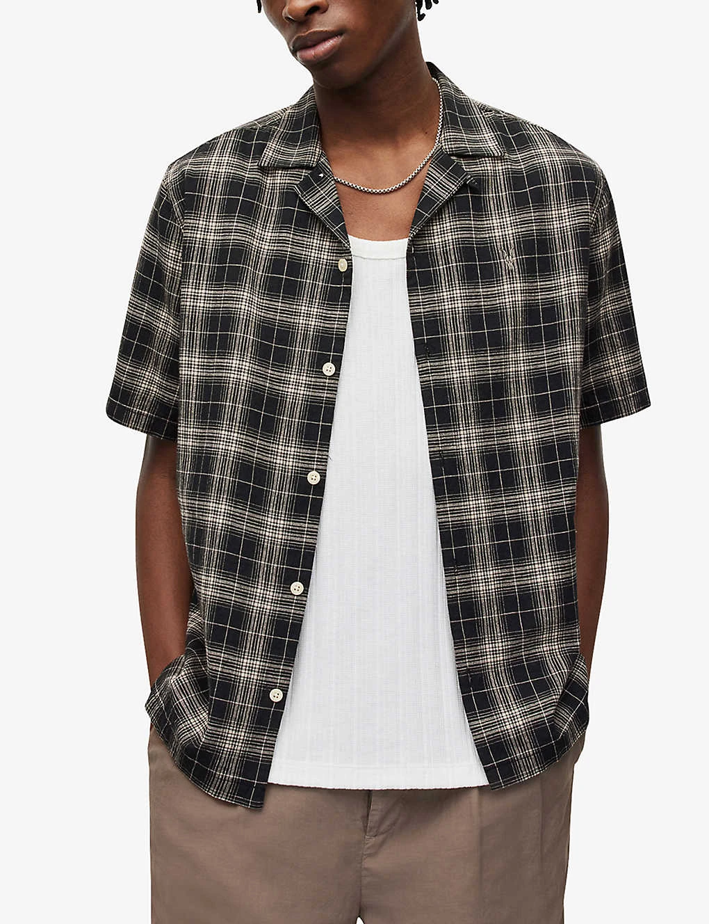 AllSaints Checked Short-sleeved Cotton-blend Shirt
