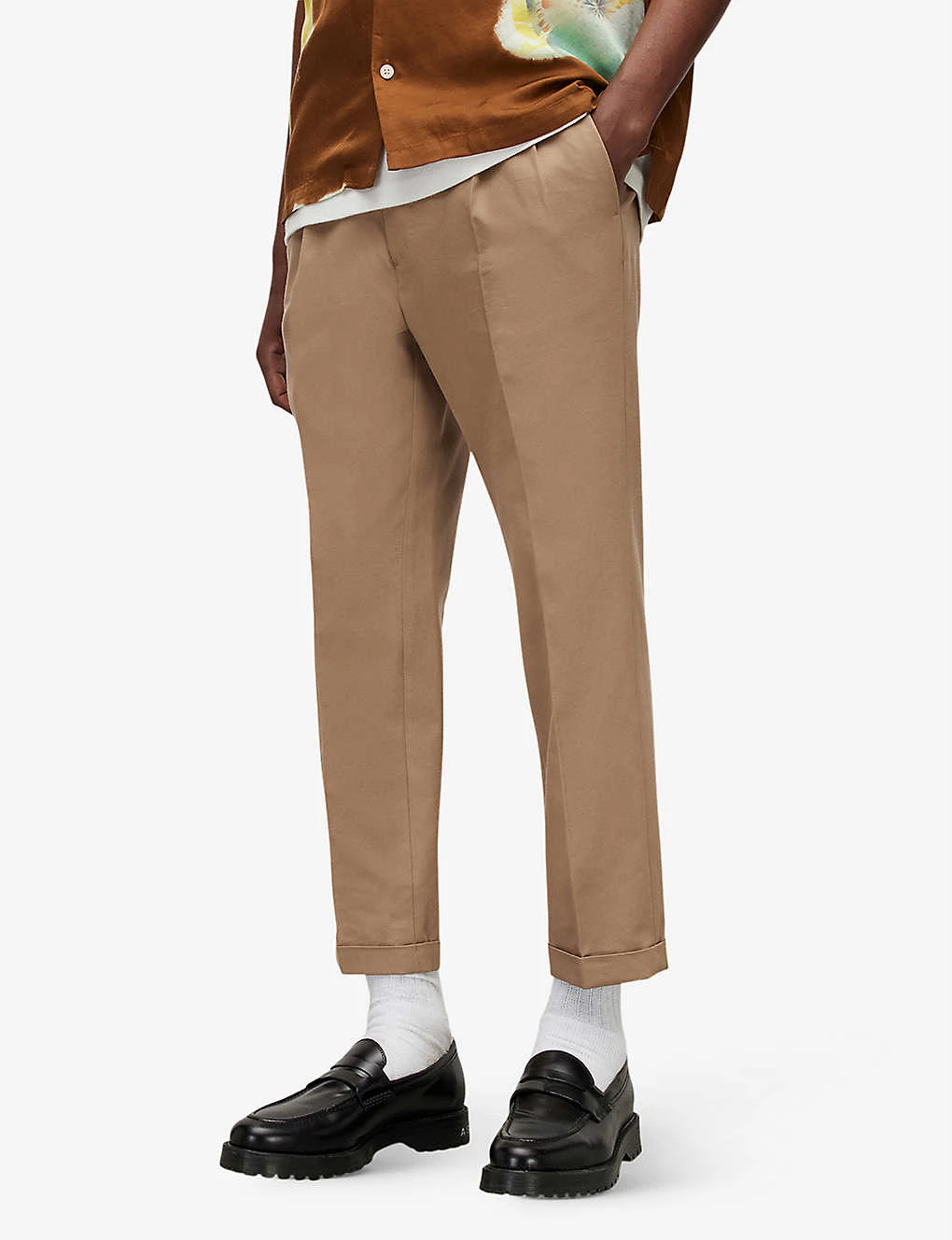 AllSaints Pleated Straight-leg Mid-rise Cotton-blend Trousers