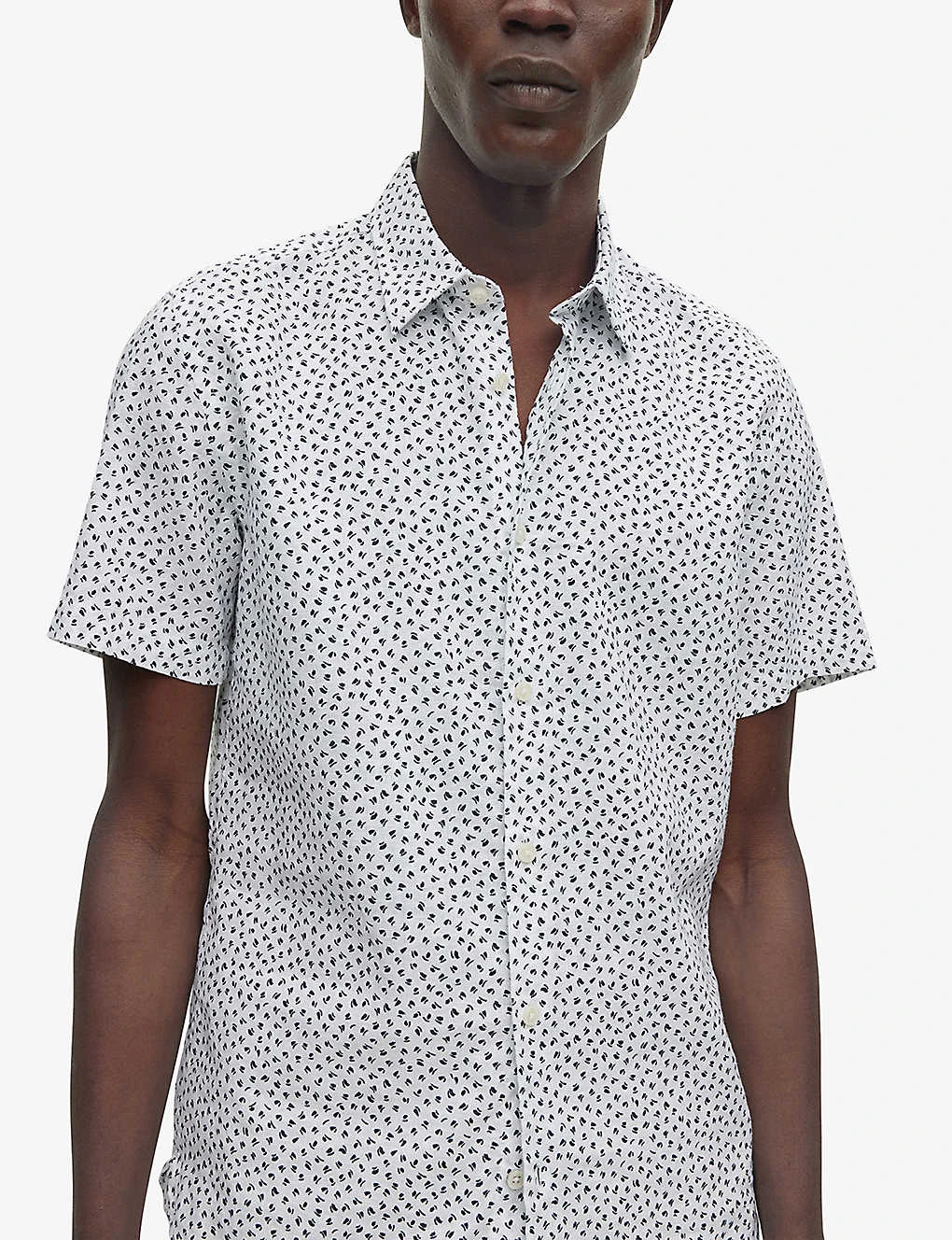 Boss Graphic-print Regular-fit Stretch-linen Shirt