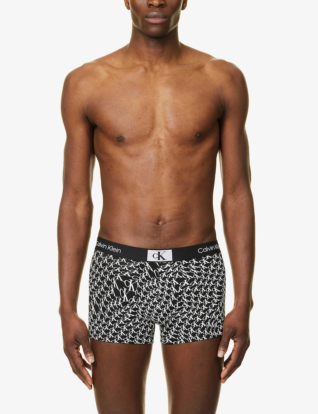 Calvin Klein Monogram-print Stretch-recycled Cotton-blend Trunks