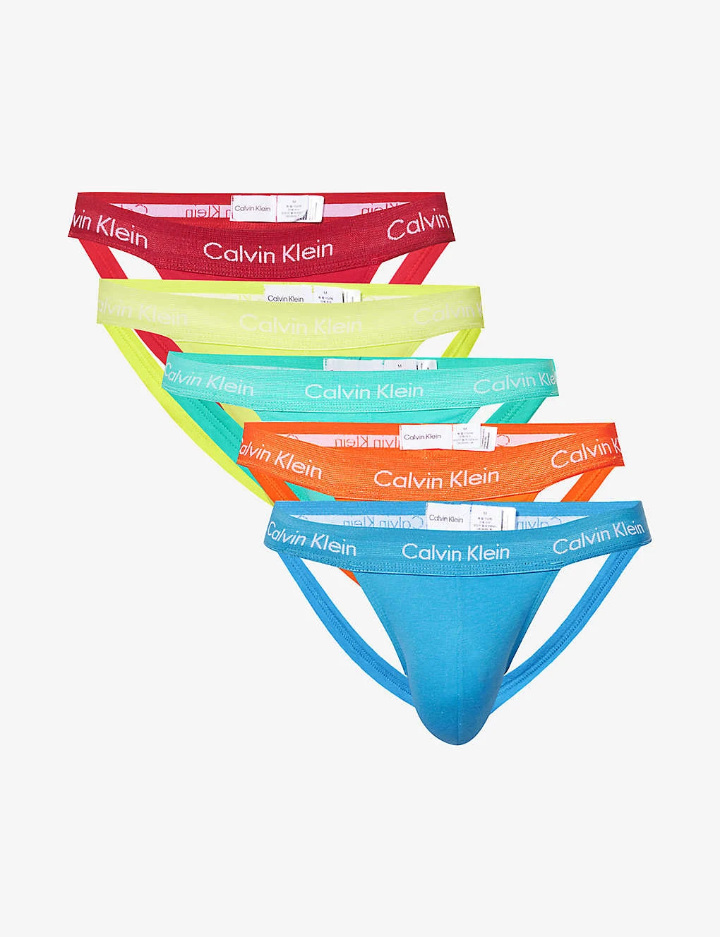 Calvin Klein Pride Low-rise Branded-waistband Pack Of Five Stretch-cotton Jock Straps