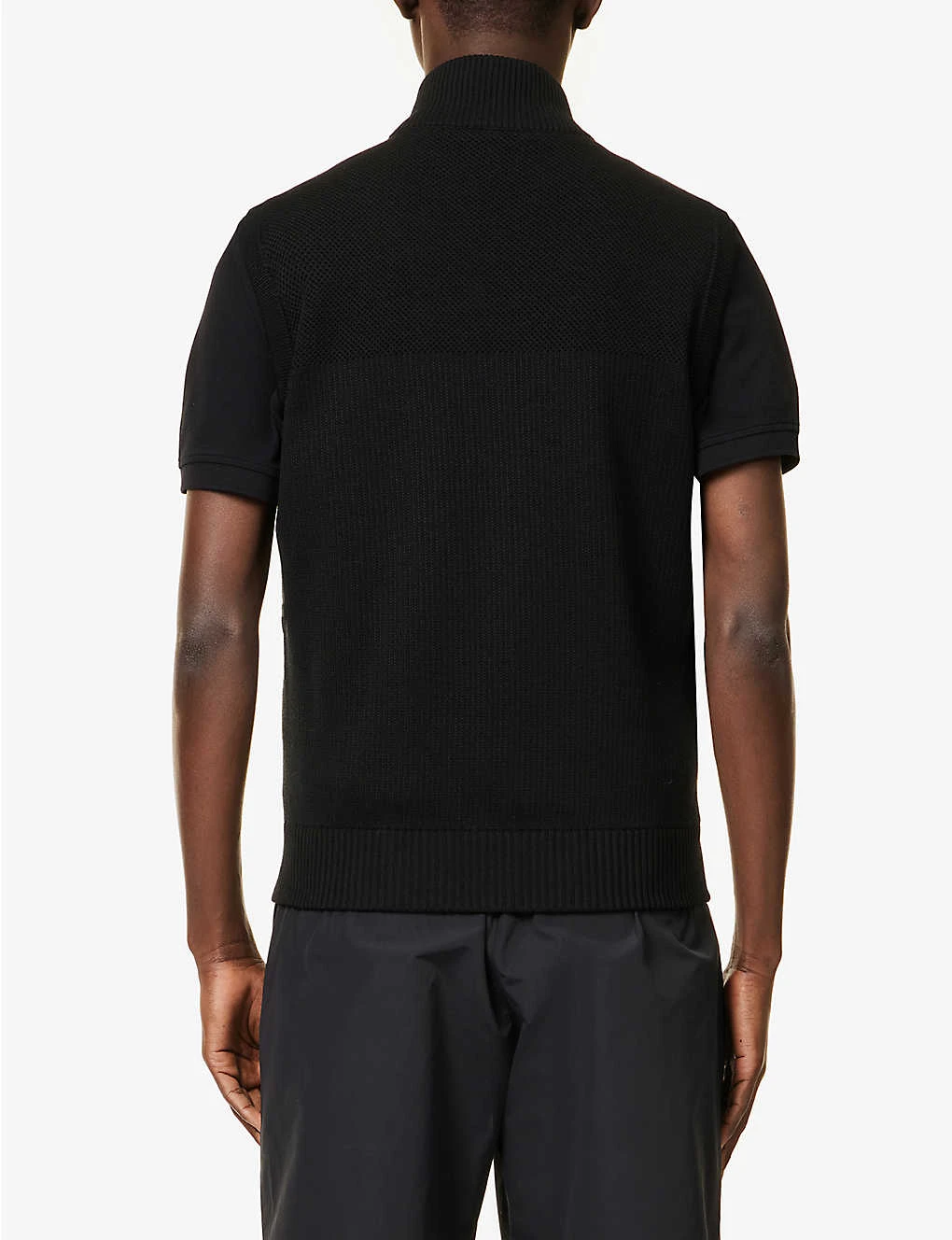 - Relaxed fit, high neck, quilted panel at front, brand logo patch at chest, two zipped welt pockets at front, fully lined, knitted