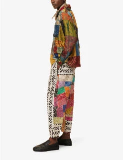 - Boxy fit, V-neck, sleeveless, two patch pockets at front, all-over contrasting panels, all-over Kantha embroidery, handwoven, contrast trims