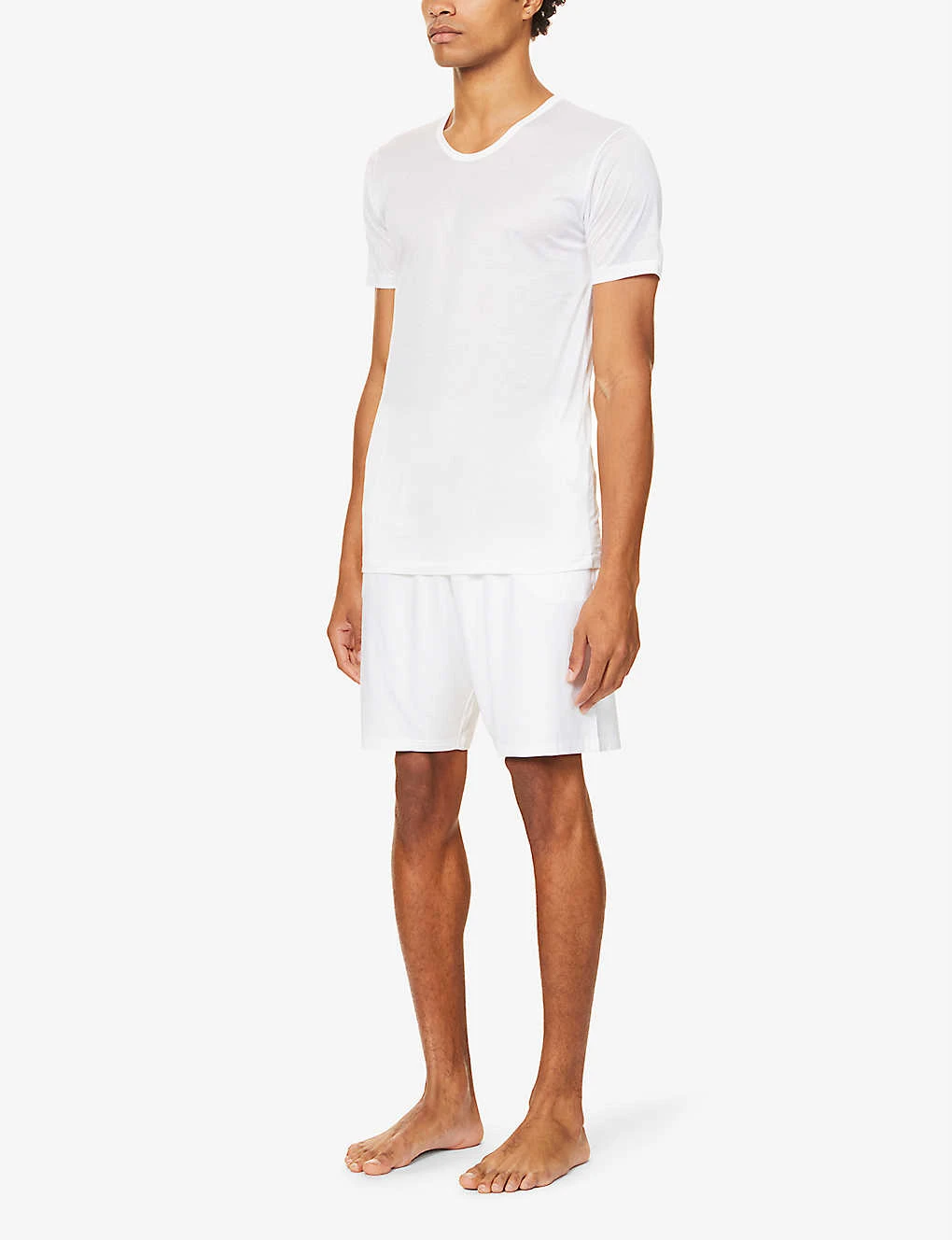 - Regular fit, mid-rise, branded elasticated waistband, slip-through fly