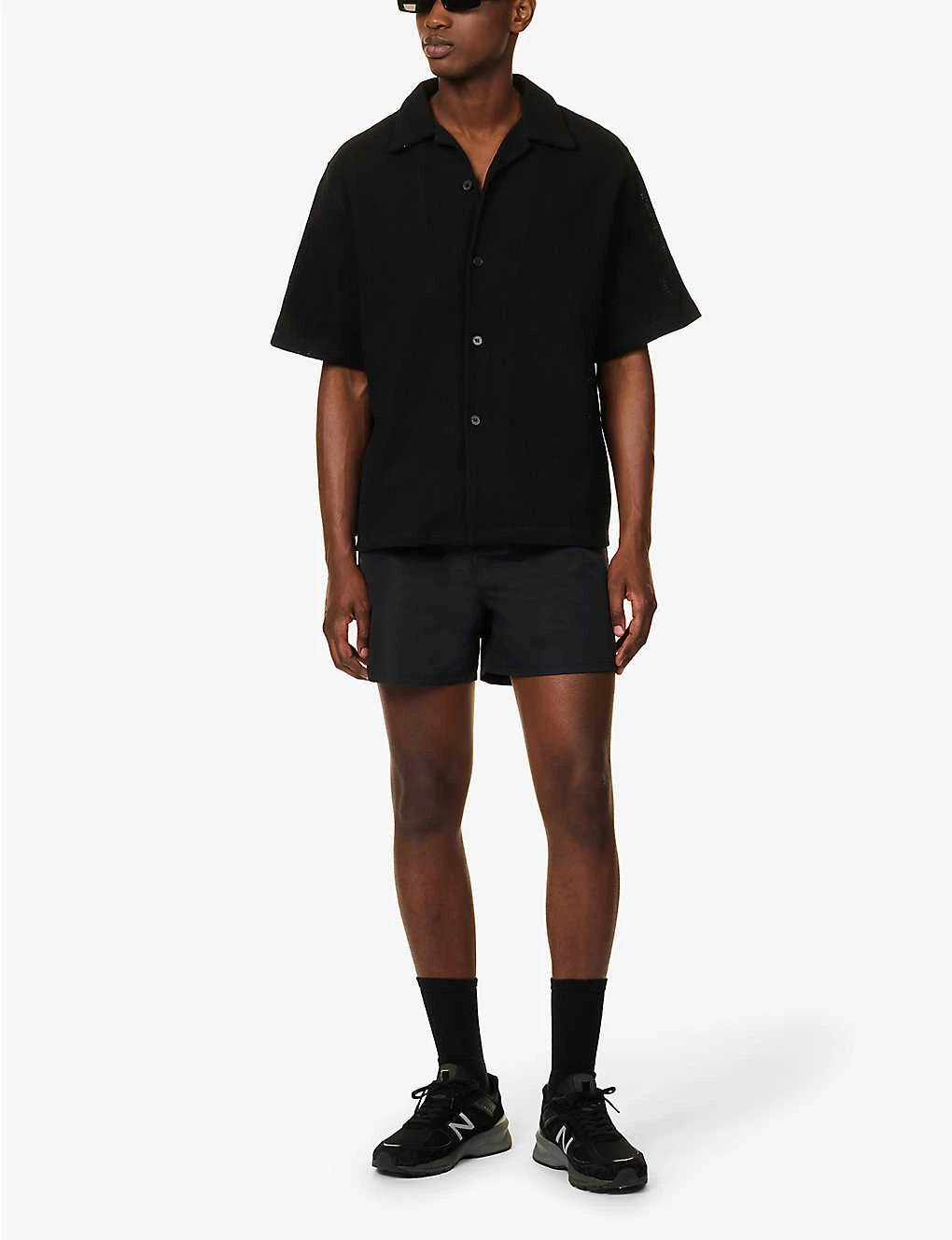 - Relaxed fit, short sleeves, all-over knitted weave, embroidered branding at back