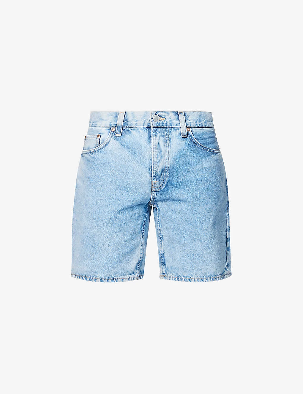 Nudie Jeans Seth Embroidered Regular-fit Organic-cotton Denim Shorts