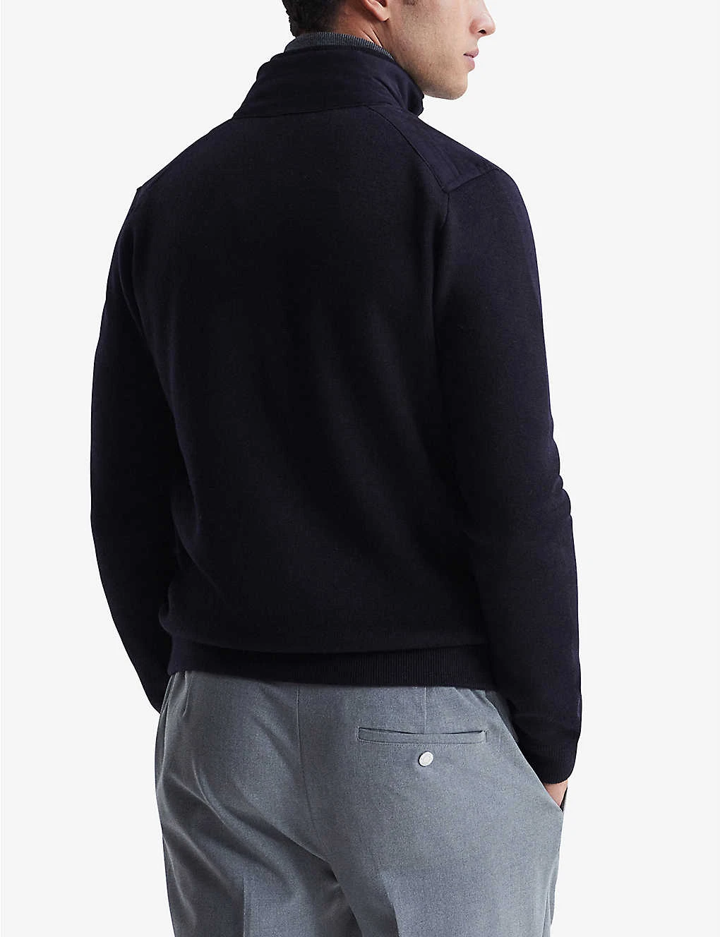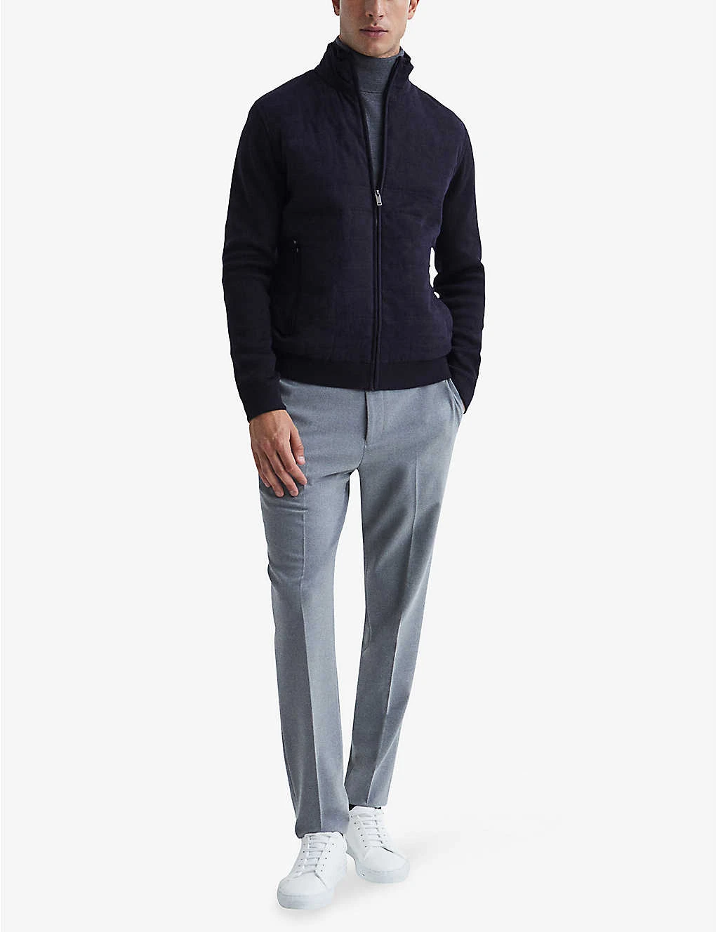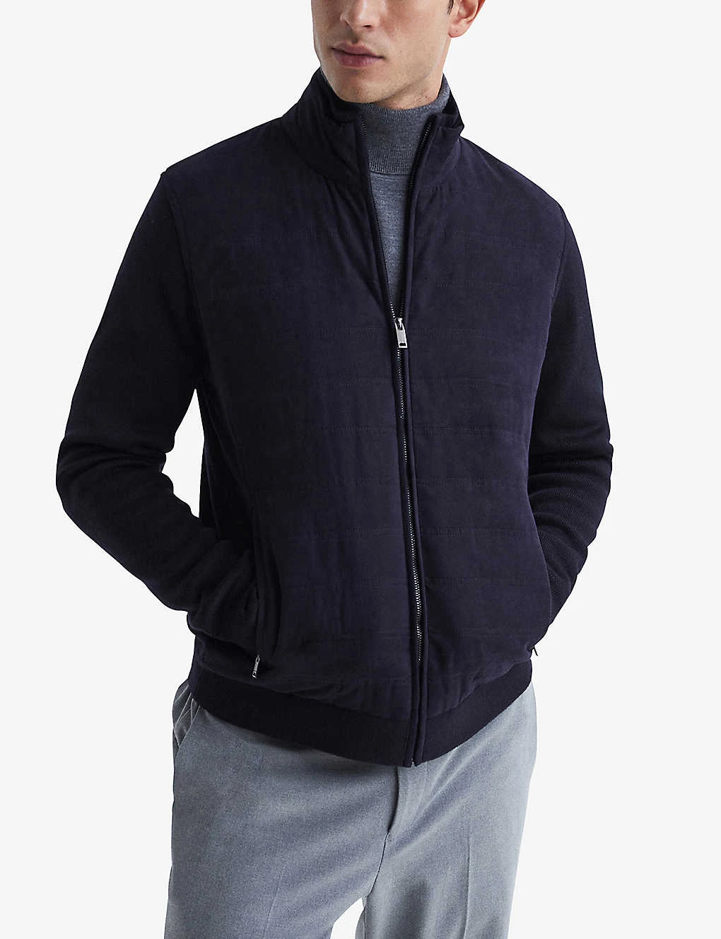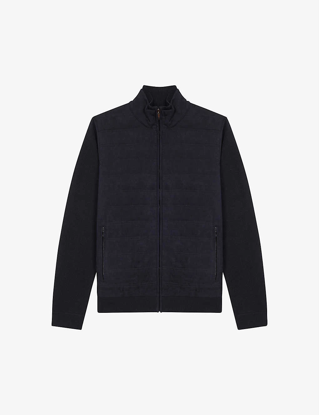 Base notes: Regular fit, high neck, long sleeves, two zip pockets at front, quilted bodice, knitted sleeves, silver tone hardware