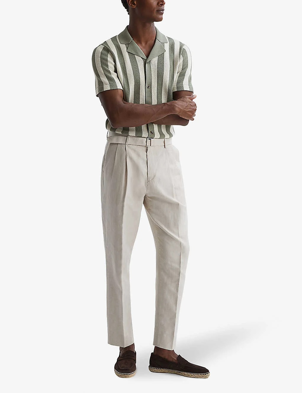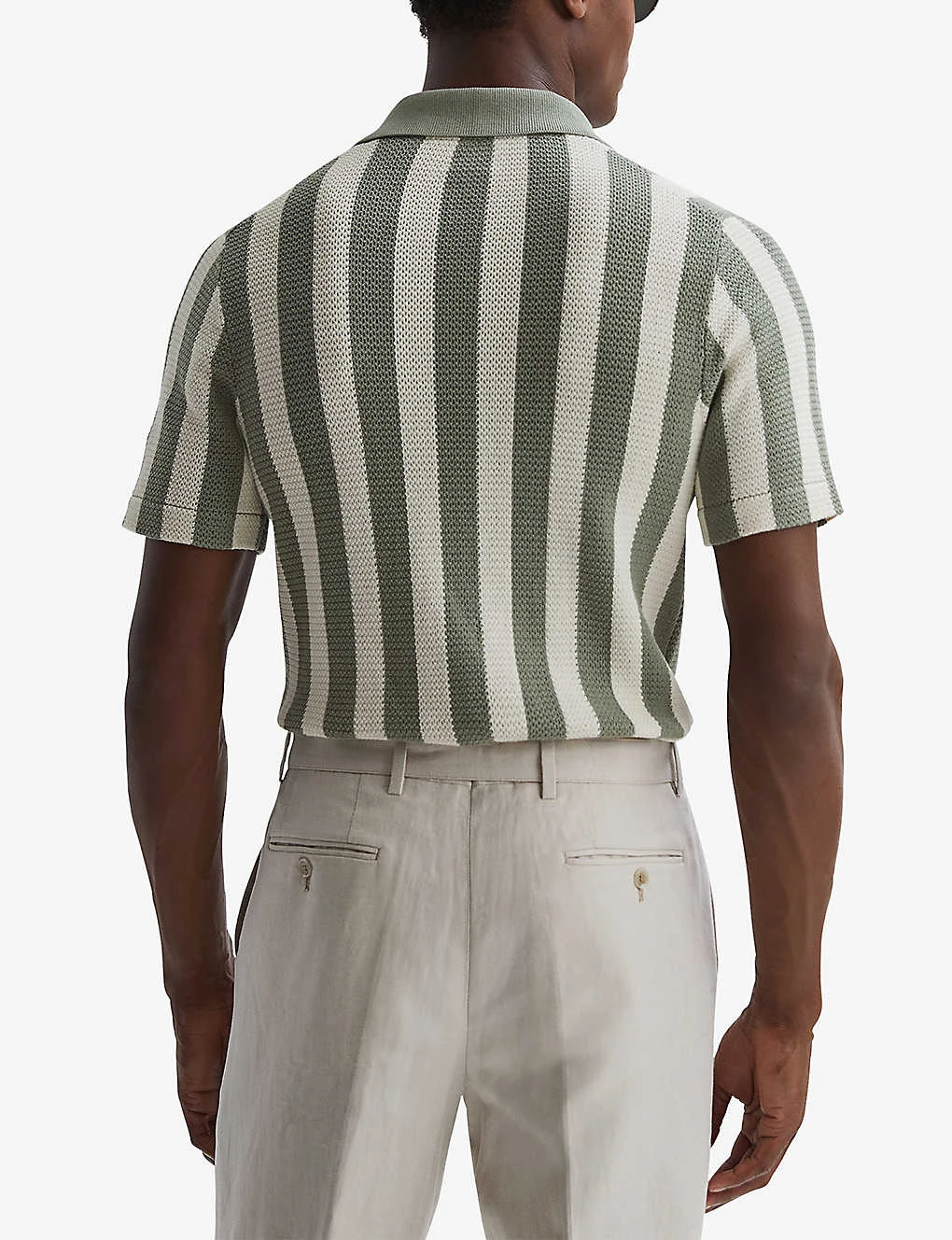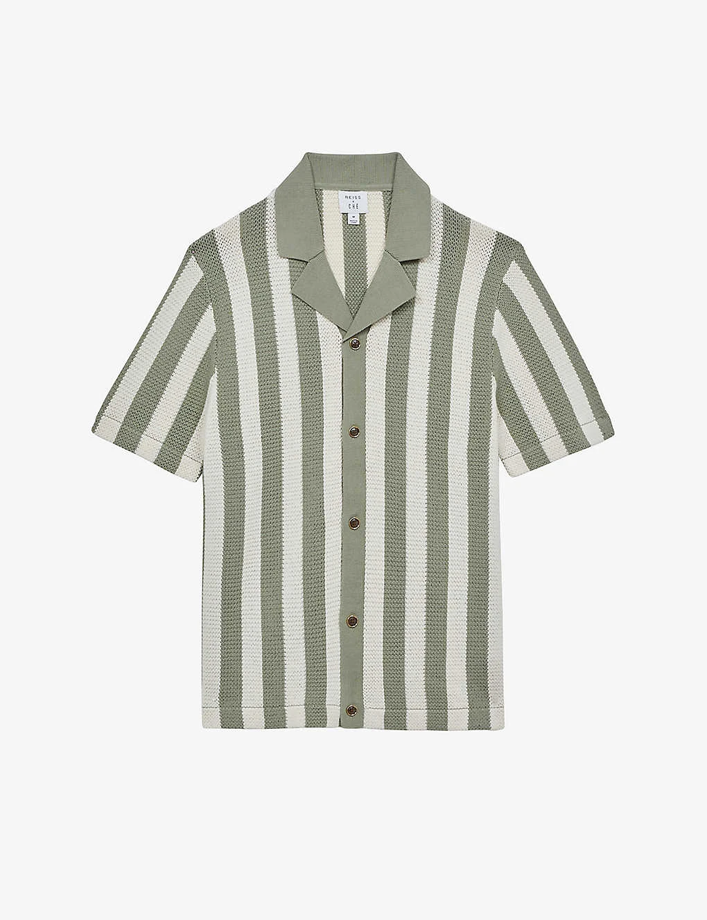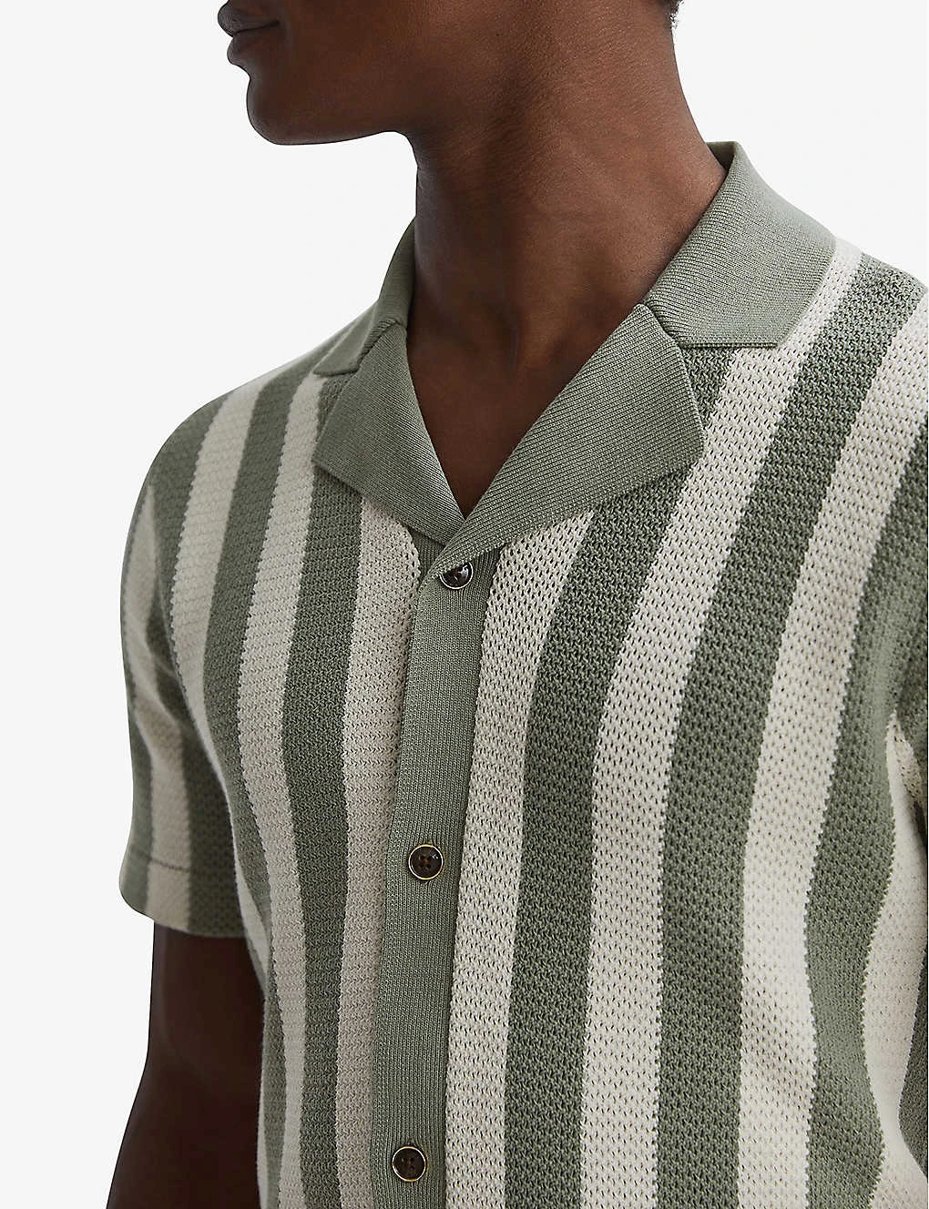 Reiss Tortolli Cuban-collar Stripe-pattern Cotton Shirt