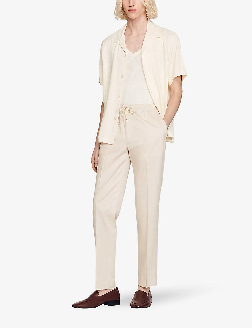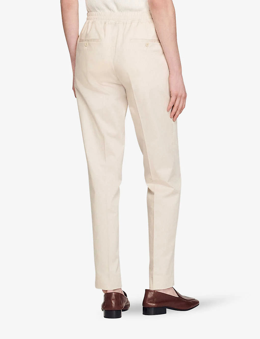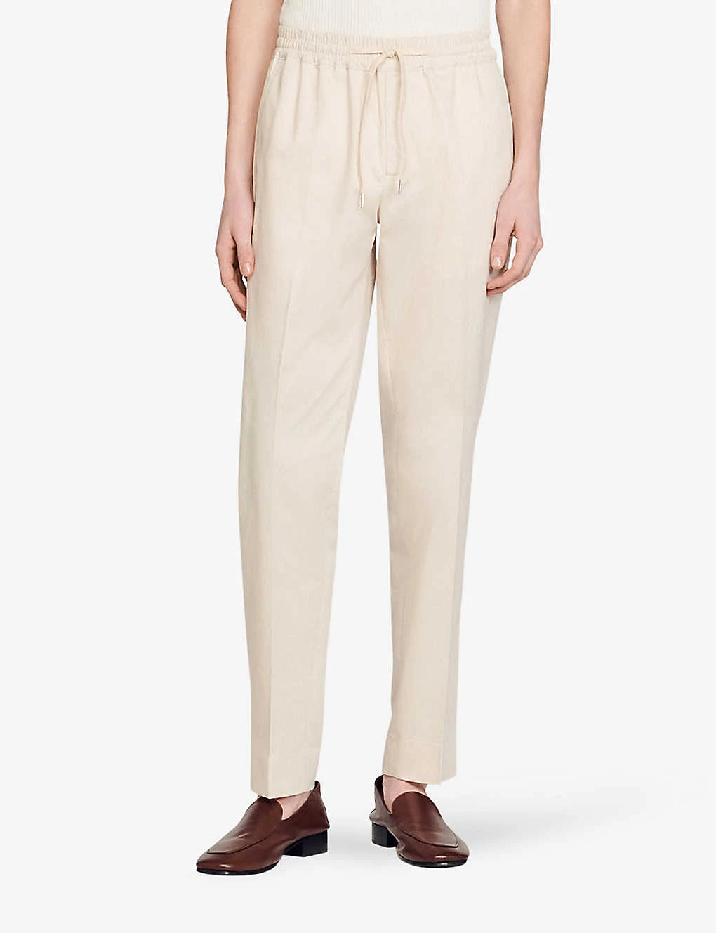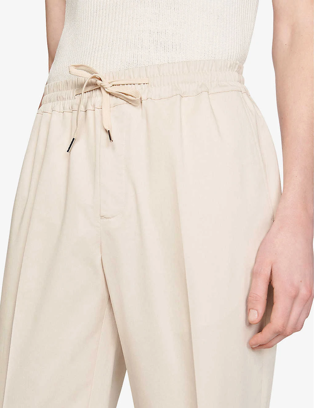 Sandro Tapered Drawstring-waist Stretch-cotton Blend Trousers