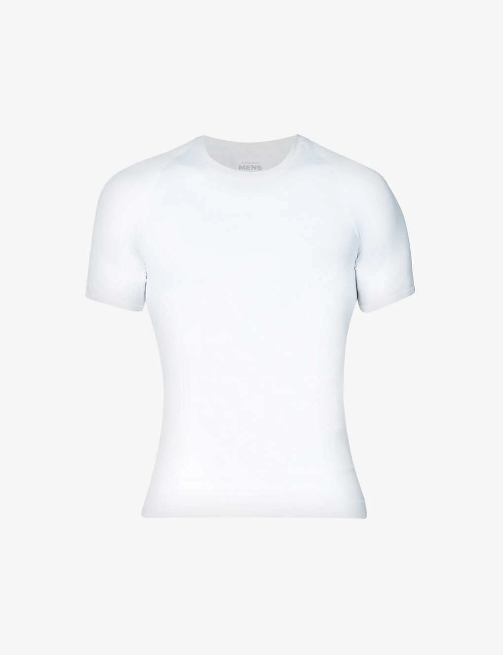- Fitted, crew neck, ribbed trim at neck, short raglan sleeves, seamless construction, moisture-wicking, quick-drying, powerful compression, Ultra Sculpt support, ab and chest control, lower back support, breathable