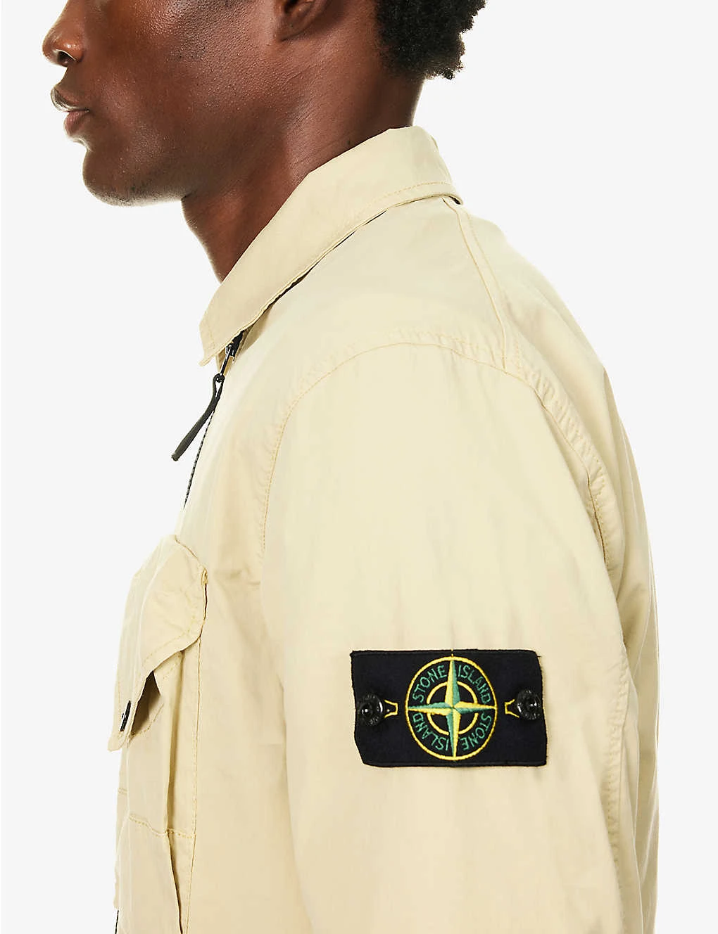 Stone Island Logo-badge Relaxed-fit Stretch-cotton Overshirt