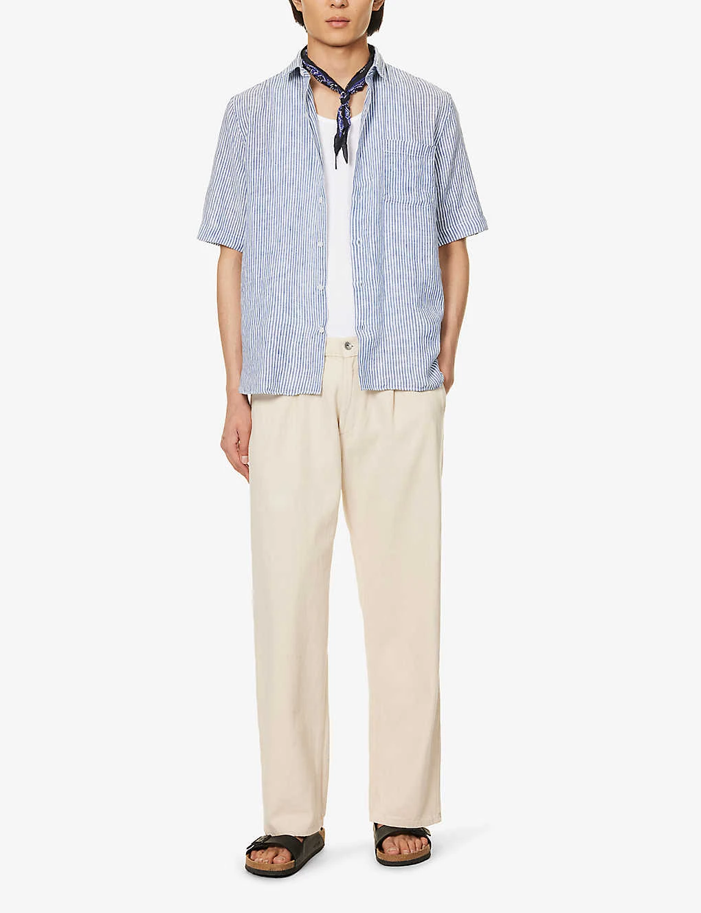 Sunspel Striped Short-sleeved Regular-fit Linen Shirt