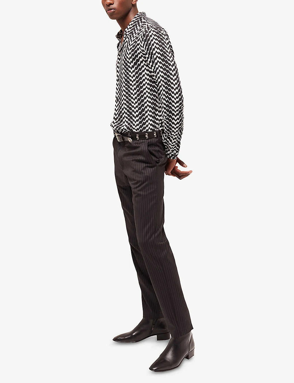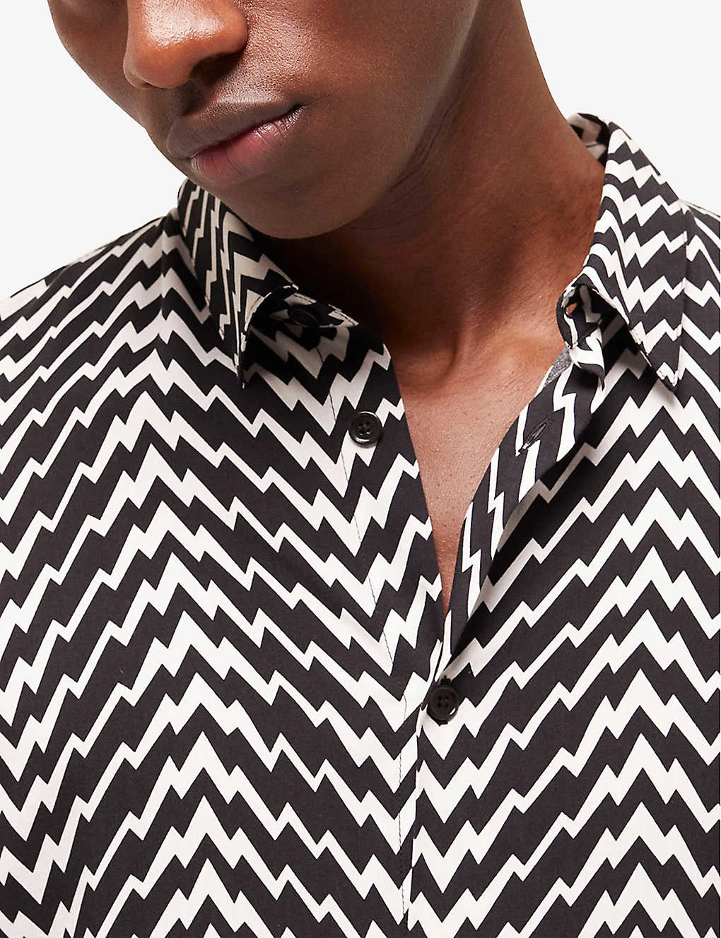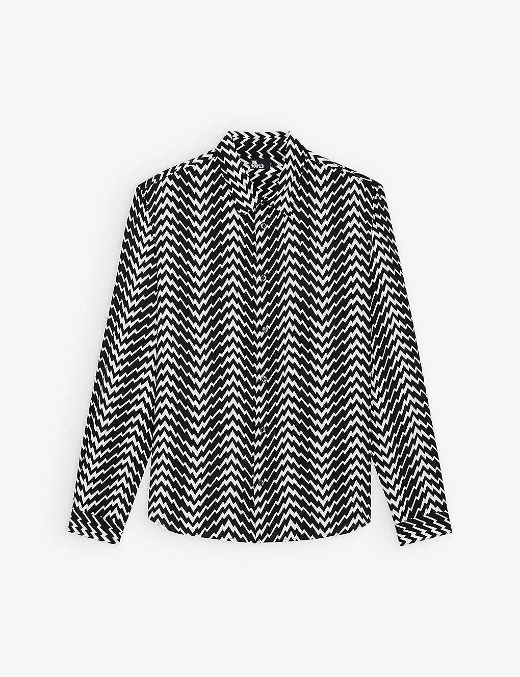 - Regular fit, long sleeves, classic collar, all-over graphic zigzag print, buttoned cuffs, curved hem