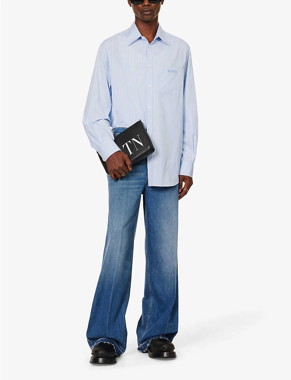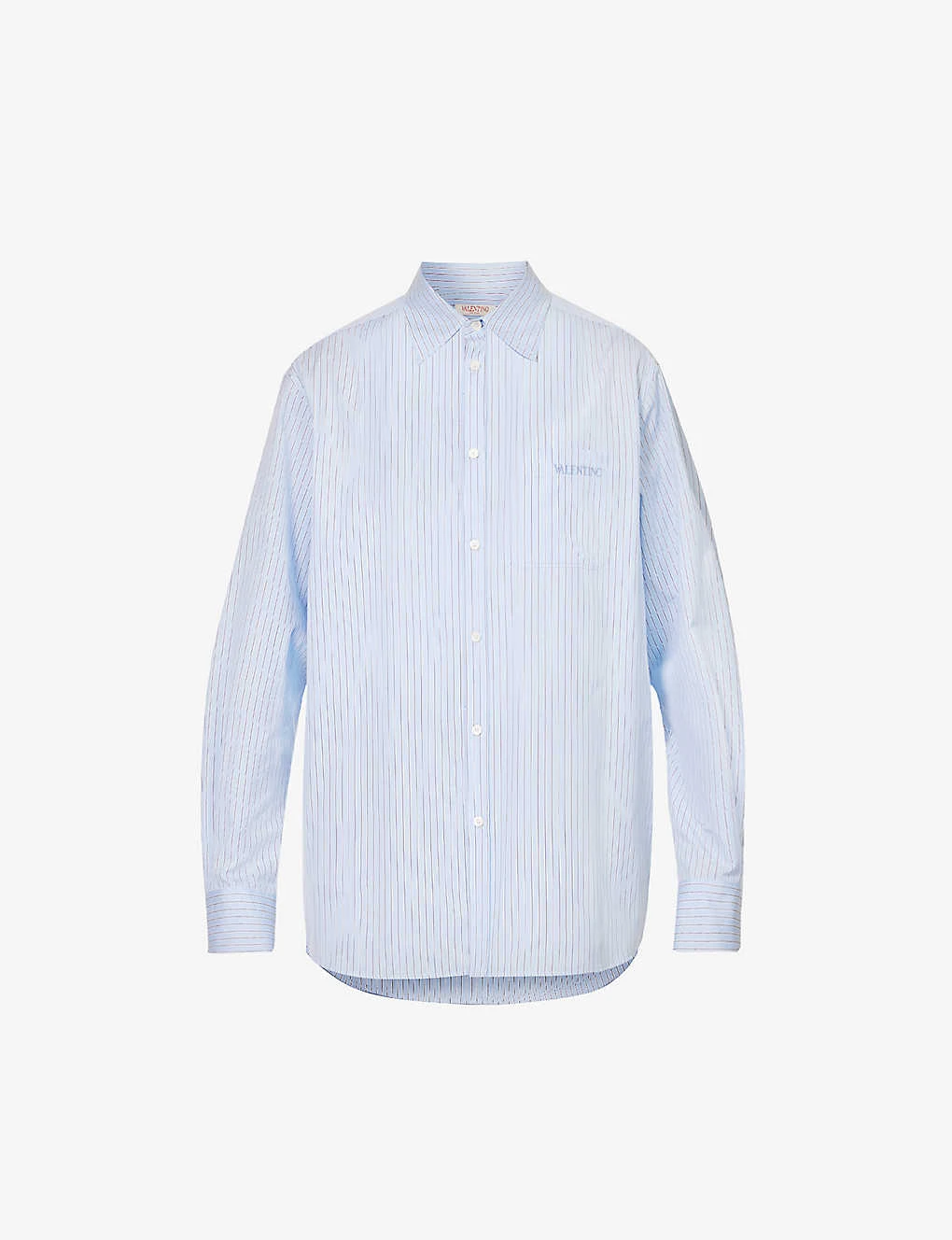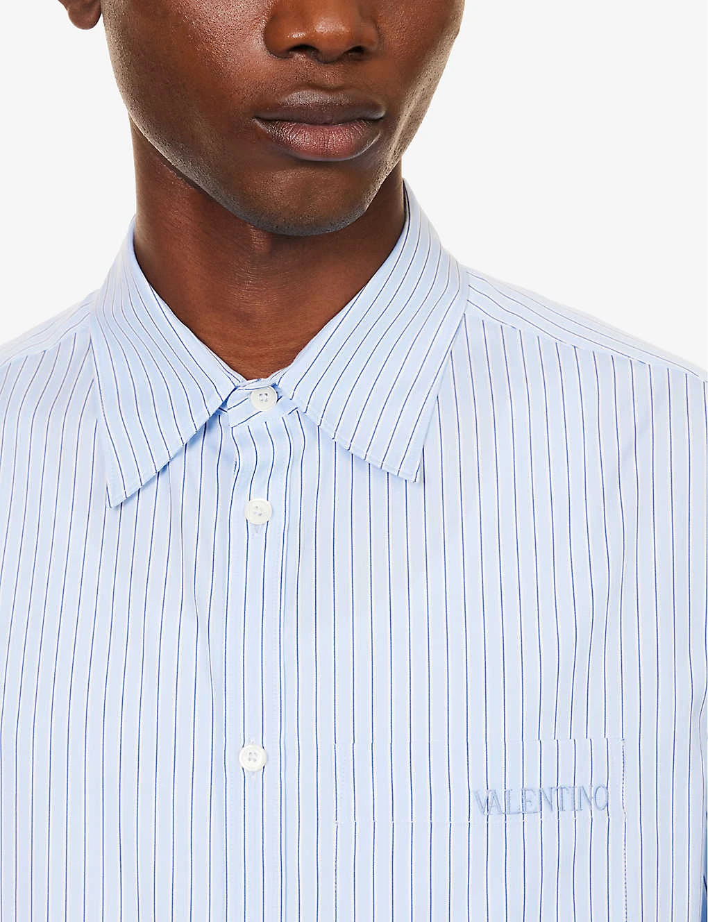 Valentino Brand-typography Striped-pattern Regular-fit Cotton-poplin Shirt