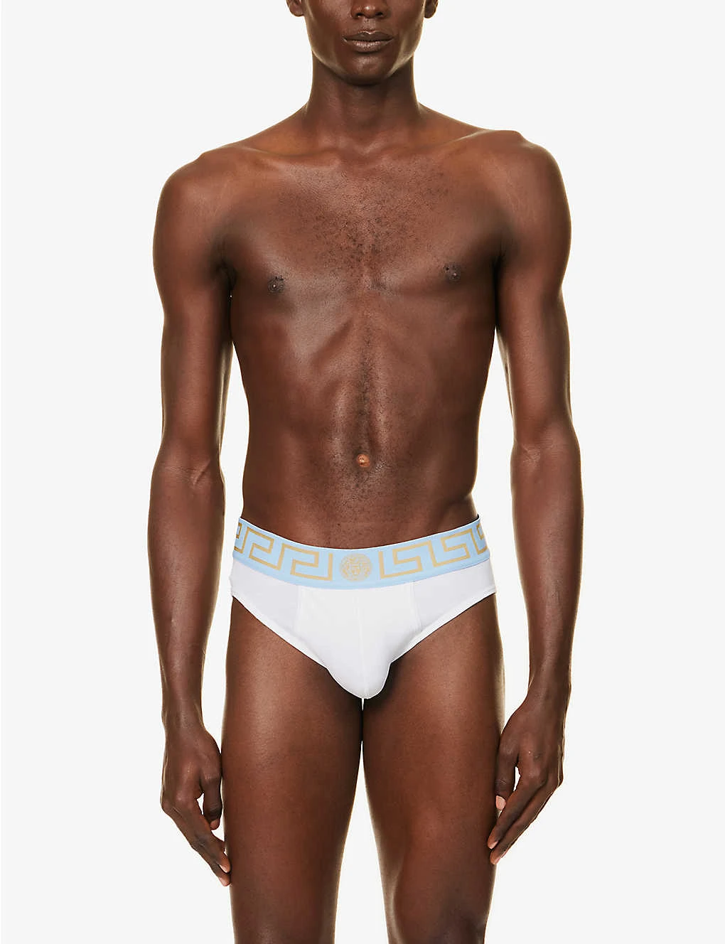 Versace Logo-waistband Low-rise Stretch-cotton Briefs