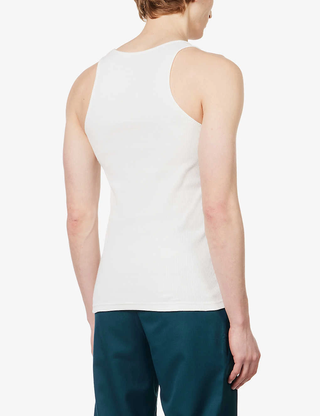 Y-neck Textured-weave Regular-fit Cotton Vest